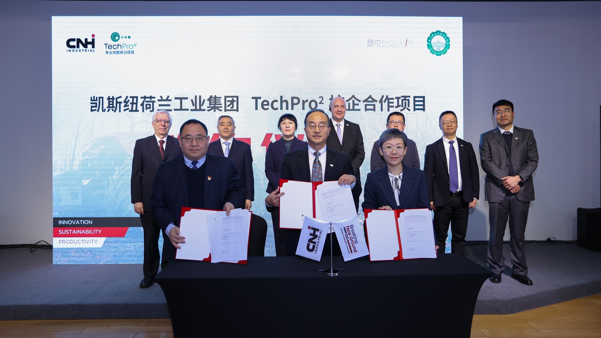 当日, 凯斯纽荷兰工业集团与黑龙江农业工程职业学院、浙江意中智能科技有限公司举行了TechPro² 校企合作签约仪式,为市场培养熟悉农业生产规律、熟练运用各种现代生产装备的新型农机技术人才。自2014年以来,凯斯纽荷兰工业集团已在浙江、吉林、新疆和黑龙江陆续开办了TechPro² 校企合作项目,着眼于农机行业的技术进步和就业需求,强调理论与实践相结合,培养紧跟农机行业发展前沿,深度契合本土市场特点的复合型人才。