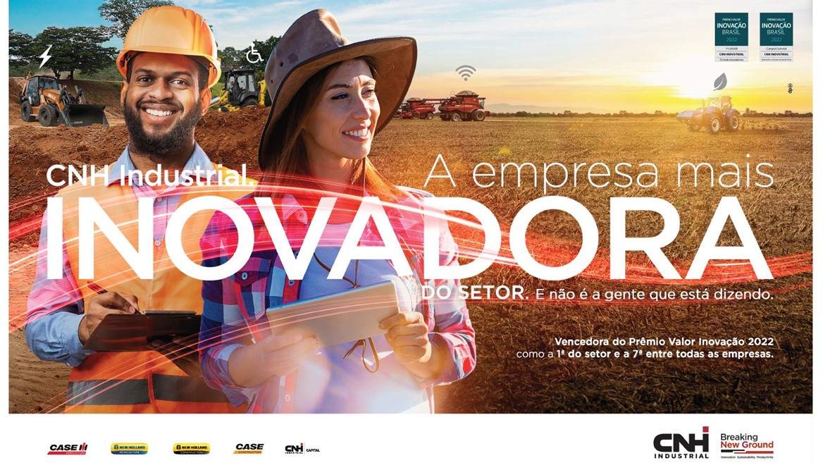 Impulsionada pelo seu propósito “Breaking New Ground”, a CNH Industrial aposta em novos caminhos, quebra barreiras e se compromete a fazer melhor todos os dias. O foco da empresa é desenvolver inovação para gerar produtividade com sustentabilidade para seus clientes. Como resultado dessa jornada contínua, conquista mais uma vez o Prêmio Valor Inovação Brasil. Na edição 2022, a CNH Industrial foi eleita a mais inovadora do setor Automotivo e Veículos de Grande Porte. Além da liderança na sua categoria, a premiação, promovida pelo jornal Valor Econômico em parceria com a consultoria Strategy&, posicionou a CNH Industrial em sétimo lugar na lista das mais inovadoras do Brasil, um ranking que analisou 150 empresas de 23 setores. A cerimônia de premiação foi realizada dia 26 de julho, em formato virtual.