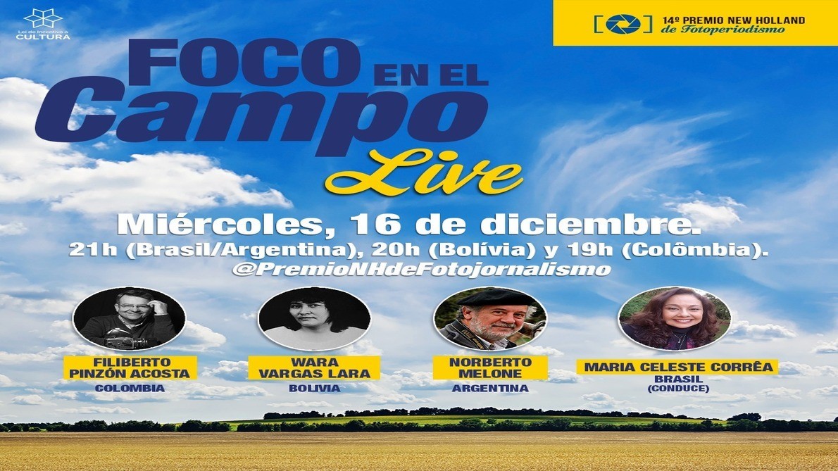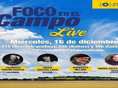 Los amantes de la fotografía podrán seguir el intercambio de experiencias de los profesionales Norberto Melone, Wara Vargas Lara y Filiberto Pinzón Acosta en el evento online "Foco en el Campo", que forma parte de la 14ª edición del Premio New Holland de Fotoperiodismo.