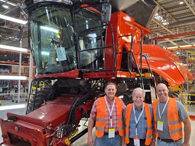 Gracias a sus vínculos en el país, este año Fegley visitó la planta de Case IH en Córdoba, una experiencia que lo conectó nuevamente con la innovación que siempre admiró. Destacó el alto nivel tecnológico, la eficiencia de los procesos y la calidad del ambiente de trabajo: “fue la planta más moderna y prolija que he visitado. Me sorprendió gratamente la organización y la profesionalidad de cada equipo. Fue muy interesante ver de cerca el proceso productivo de los tractores y cosechadoras”.