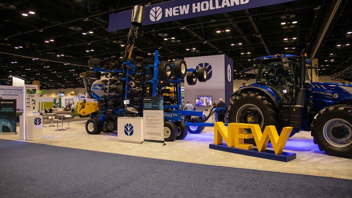 - New Holland products took centerstage at the show, including the new T7.300 long wheelbase tractor and P2185 air disc drill being released later in 2023.