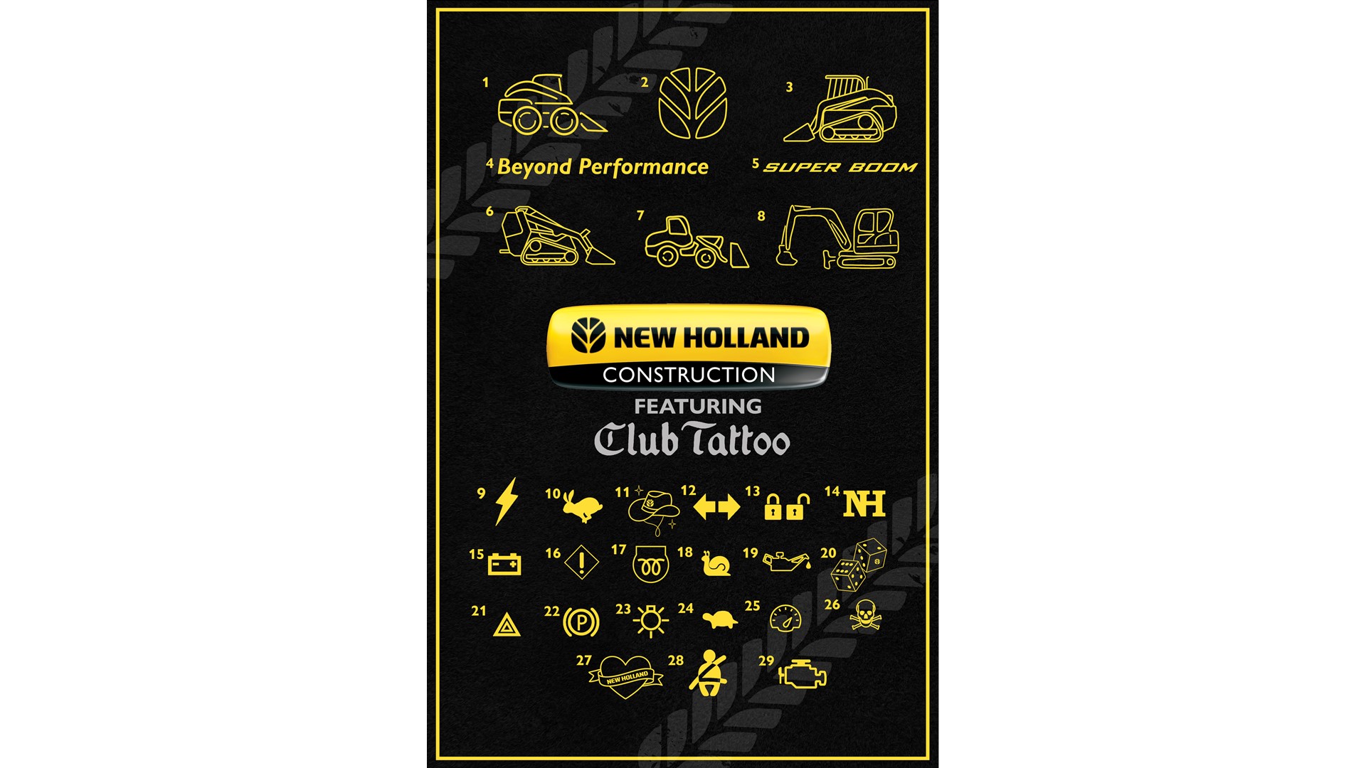 After a popular first showing at the 2023 CONEXPO, the brand is once again hosting live tattoo artists from Club Tattoo in its booth all show-long. Attendees have the chance to get tatted for free with one of the 29 curated New Holland Construction-inspired tattoos. Options range from the New Holland leaf to the rabbit mode icon, with five new tattoo options for attendees to choose from.