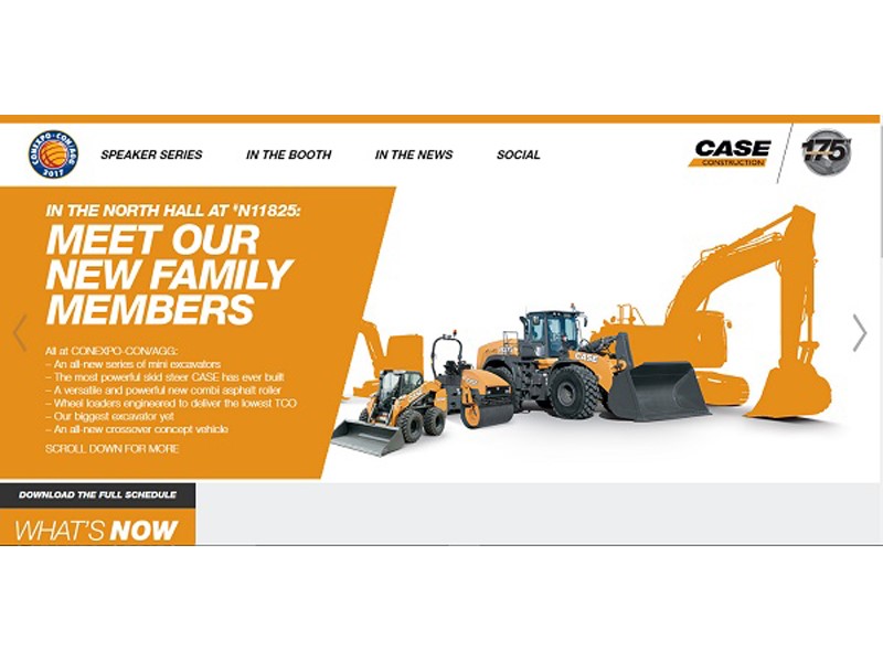 A CASE lançou o hotsite casece.com/conexpo para atualizações adicionais durante todo o evento. Os visitantes encontram aqui um cronograma completo dos eventos, atualizações de novos produtos e links para atividade nas redes sociais e para a transmissão do programa durante o evento.